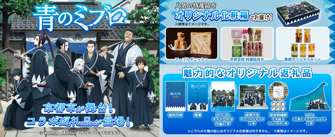 アニメ・マンガ関連の品に特化したふるさと納税サイト「アニふる」で、TVアニメ『青のミブロ』と京都市がコラボしたオリジナル返礼品の新作